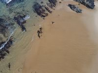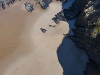 Aerial view of the coastal landscape in Portugal, with its beach, slope, wood, mountain landforms, lake, and ocean. The natural environment features aeolian landforms, land painting, and the singing sand of the shore, creating a diverse palette of shapes and tints and shades. A perfect spot for recreation and to appreciate the geological phenomenon of the world.