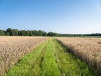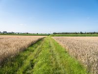 A lush cornfield with round bales of straw in the foreground stretches out as far as the eye can see under a clear blue sky in rural Germany.