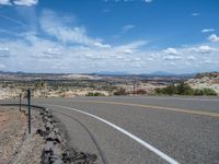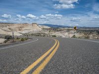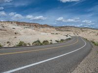 Located in rural Utah, the Head of the Rocks offers a stunning landscape that is a true testament to the beauty of nature. The road winds through the vast expanse, surrounded by towering cliffs and stunning rock formations. With clear blue skies and fluffy white clouds overhead, it's a perfect day to explore this scenic route. The asphalt road stretches for miles, offering a peaceful and serene journey through this picturesque part of the USA.
