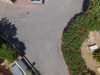 A top down aerial view of the residential area of Mallorca in the Balearic Islands, Spain. The open space of the asphalt road is elevated among the city buildings of Europe.