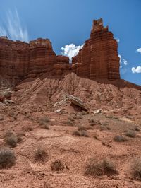 In the heart of Utah's Capitol Reef, Highway 12 winds through a breathtaking landscape of open spaces and natural beauty. The clear skies overhead illuminate the dirt and gravel surfaces that characterize this area. As you travel along the highway, you'll encounter stretches of dirt and gravel, surrounded by sand and open spaces. The ruggedness of the terrain and the untouched nature of the surroundings make this a truly unique and awe-inspiring destination.