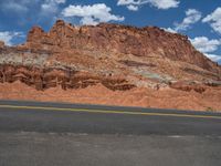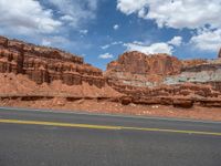 Traveling along Highway 12 in Capitol Reef, Utah, you'll be greeted by breathtaking landscapes and stunning natural beauty. The road winds through the picturesque landscape, with asphalt stretching as far as the eye can see. The clear blue sky is adorned with fluffy clouds, creating a serene and peaceful atmosphere. This scenic route offers a profile of the surrounding nature, allowing you to immerse yourself in the beauty of Utah's countryside.