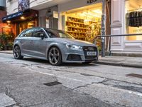 The dawn light casts a yellow hue on the classic architecture of the Hong Kong Sar's Happy Valley district, with a mix of residential and business properties, public spaces, cafes and shops. The iron, concrete and wall facades of the urban neighborhood create a unique atmosphere for the city.