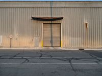 A clear sky profiles the dawn over a dirt surface in Salt Lake City, Utah, USA. An industrial storage depot with a gravel area and hard shadows is seen in the foreground.