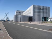 The architectural artistry of Bremen, Germany is on full display in the city's modern business district, featuring industrial fixtures, concrete and cobblestone surfaces, and symmetrical facade designs.