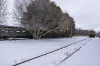 An industrial area in Toronto with a gloomy grey sky, showcasing a factory, railroad tracks, and freezing water