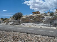 In the heart of Utah's rugged landscape, a straight road stretches into the distance, surrounded by the beauty of nature. The asphalt road cuts through the rural countryside, offering a glimpse of the stunning scenery. One quarter of the way along the road, the iconic Head of the Rocks formation emerges, standing tall against the clear blue sky. This road in Escalante, Utah is a must-see for nature enthusiasts and road trip enthusiasts alike.