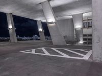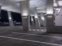 An open parking lot in Miami Beach, Florida casts artificial light onto the concrete surface, creating a profile straight down the road in the dark of night.