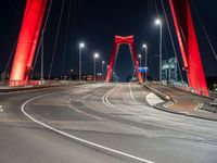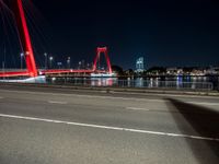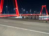The city life of Holland is illuminated by the artificial light of its modern architecture, street lights, headlamps, and cable-stayed bridges. Water and shadows provide contrast to the straight through roads, asphalt surfaces, and electricity that power the urban design.
