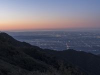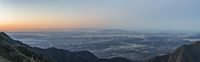 a view of a valley with pine trees from a mountain top looking over a city and hills