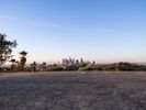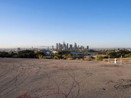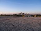 In Los Angeles, the cityscape unfolds under a clear sky, with asphalt roads crisscrossing the urban landscape. As dawn breaks, the skyline is bathed in sunrise hues, revealing helipads and open spaces that define the city's character. This urban gem in California, USA, offers a captivating blend of surface and sky, embodying the essence of a modern metropolis.