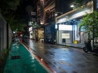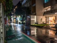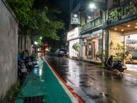 Straight down the road in Taipei City, Taiwan, Asia, the artificial neon lights illuminate the wet and dark asphalt roads of the Republic of China, providing a warm and inviting ambience to the urban shopping district.