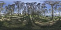A serene view of a lush green landscape with trees and open space on a sunny day
