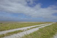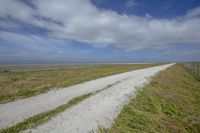 A picturesque landscape with vibrant vegetation and cumulus clouds, showcasing the beautiful coastal horizon.