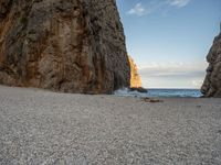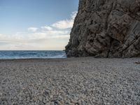 In the stunning landscapes of Majorca, part of the Balearic Islands in Spain, rugged rock walls frame the coastal areas. The open spaces offer serene views of the ocean, with gravel and dirt surfaces adding to the natural beauty. Clouds drift lazily over the picturesque canyons and beaches, creating a tranquil atmosphere. The walls of the island stand as a testament to its geological profile, blending seamlessly with the coastal scenery of this European gem.