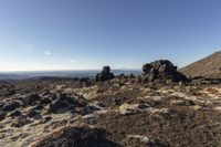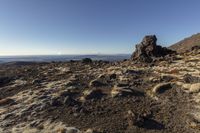 A breathtaking view of a mountain range with clear blue skies and lush vegetation on a highland terrain.