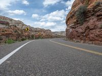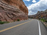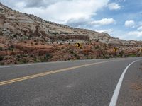 Travel down the road in Utah, USA and experience the breathtaking landscape of nature. The asphalt stretches as far as the eye can see, with clouds dotting the sky. This scenic route takes you through one quarter of the beautiful Utah landscape, offering a glimpse of the majestic mountains and serene surroundings. Whether you're driving or simply admiring the view, this road trip is sure to leave you in awe of nature's beauty.