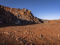 red rocks in an empty, barren landscape, under a clear blue sky, with no clouds