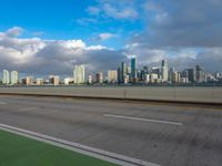 A profile of the Miami Beach skyline, showing the coastal city's roads, buildings, and waterfront. USA, Florida, Miami.