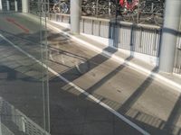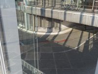 reflection of a bike in the window of an office building or apartment building by itself