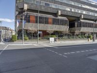 A mixed-use property in a residential area of Berlin, Germany. The public space is filled with modern architecture, urban design, office buildings, infrastructure, and transportation. The lane is lined with homes and houses, leading to a business district. On this sunny day, the urban city life and real estate is on full display.