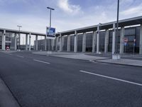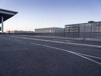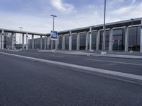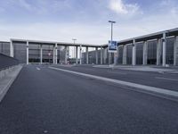 A view of the modern architecture in Berlin, Germany, with a clear sky and a straight road leading to a metropolitan area.