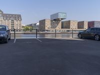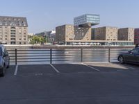 A view of the modern architecture in Berlin, Germany, with a cityscape and clear sky in the background.