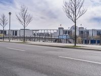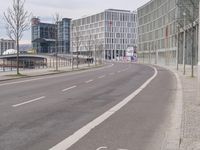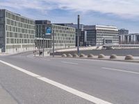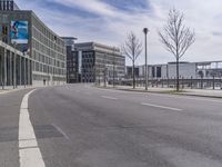 A view of a modern architecture building in the city of Berlin, Germany, with a clear sky and tree-lined streets.