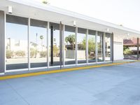 A view of a modern residential building with glass walls and metal facade in California, USA.