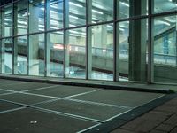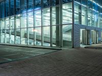 A modern high-rise building with a glass facade, urban design, composite material floors, metal fixtures and artificial light reflections in the city of Holland, Netherlands, is a symbol of the metropolitan area's city life.