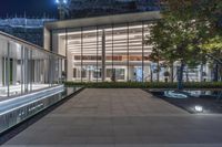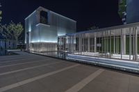 A stunning view of modern architecture in the city at night, showcasing the vibrant city life and urban design.