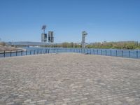 This stunning photograph captures the essence of city life in Europe, specifically in Germany. The image showcases a modern architectural marvel situated along the coastline, blending seamlessly with the surrounding urban design. The clear sky adds a touch of serenity to the bustling cityscape. A pier and a road can be seen, leading to the residential area nearby. The cobblestone surface creates a charming atmosphere, while the harbor and jetty in the distance add a touch of maritime charm. The open space and well-planned urban layout make this city a perfect destination for both residents and visitors.