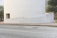 A view of the modern architecture in the bustling city of Dallas, showcasing a road lined with trees and contemporary buildings.