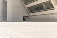 A stunning view of a modern office building in the business district of Dallas, Texas. The sleek architecture features clean lines, concrete surfaces, and a beautiful white facade.