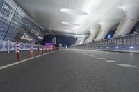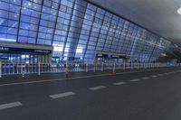 Night view of a futuristic office building in Hangzhou, China