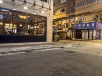 A snapshot of the modern architecture and infrastructure of Hong Kong, China SAR, located in Asia. A mix of low-rise buildings, trees, and yellow street lights brighten up the night while cars and taxis are passing by in the background. The Happy Valley and Wan Chai districts are part of the art district, with artificial lights illuminating the city's modern mixed-use town and its office buildings, restaurants, and bars.