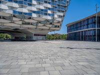 This stunning stock photo showcases the modern architecture of Zaragoza, Spain. The image captures a business district with multicolored office buildings surrounded by an open space plaza. The clear sky and paver surface add to the urban charm of this vibrant city. Explore the architectural wonders of Zaragoza in Europe, where tradition meets contemporary design.