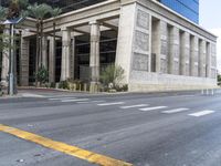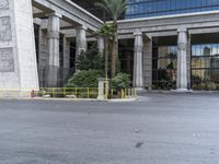 A view of a modern architecture building with a stone wall and a grey facade in Las Vegas, Nevada, USA.