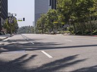 A view of a modern architecture building in Los Angeles, California, USA, surrounded by trees and vegetation on a sunny day.