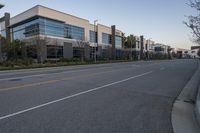 A stunning view of the modern architecture in Los Angeles, California, USA during dawn. The city's skyline is illuminated with clear skies as the sun rises, casting a beautiful light on the asphalt road and surrounding buildings. This urban landscape showcases the calm and urban design of the city, with office buildings, highways, and residential areas seamlessly integrated. The image also captures the entry and exit points, highway ramps, and inclines, along with the Armco barriers and guard rails that ensure safety. The cityscape is complemented by the presence of trees, water, and street lights, creating a serene and vibrant public space within the neighborhood.