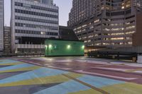 A stunning view of a modern architecture building in the metropolitan area of Toronto, Canada, at dawn.