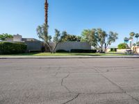 A view of a modern architectural structure in Palm Springs, California, USA, with a clear sky and palm trees in the background, showcasing the suburban lifestyle and open spaces of the area during the day in the Sonora Desert.