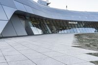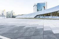 A panoramic view of the futuristic Dongdaemun Design Plaza in Seoul, South Korea, showcasing its innovative concrete and metal wall facade. The clear sky and snow-covered winter landscape add to the beauty of this urban design masterpiece.