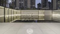 A stunning view of a modern residential building in Shanghai, China during dawn with the city's metropolitan area in the background.