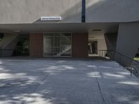 the entrance to an office building with no windows in it, and no stairs on the ground