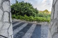 A stunning view of a modern architecture building in Solidaridad, Mexico, surrounded by lush green grass, trees, and vegetation.