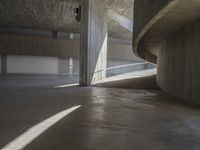 A view of a contemporary parking lot in Tenerife, Spain, with its concrete flooring, Brutalist architecture, and ceiling tiles, showcasing the urban design and city life of Europe.