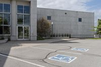 A view of a modern office building in Toronto's bustling business district, with a low concrete curb and asphalt road surface surrounded by trees and vegetation.