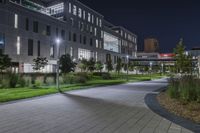 A view of a modern architecture building in the business district of Toronto, Canada, with a clear sky and lush vegetation in the foreground.