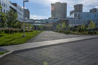 A sunny day in Toronto, Canada showcasing modern architecture in an urban business district.